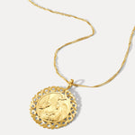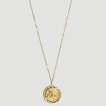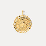 The Angels From Above Pendant features a solid 14k gold medallion with an intricate engraving of two angels in flight, framed by a delicate lace-like border. A symbol of divine protection and spiritual guidance, this piece captures the beauty of celestial beings in motion.