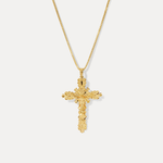 Timeless and deeply meaningful, the Crucifix Necklace is cast in solid 14k gold with ornate detailing throughout. From the textured floral scrollwork to the three-dimensional figure of Christ — raised and sculpted separately from the cross for added depth and dimension.
