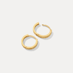 These are not your average huggies. With a faceted, diamond-cut surface carved into a subtle checkerboard pattern, each angle is designed to reflect light — creating a striking, mirror-like shine that turns heads with every movement.