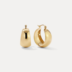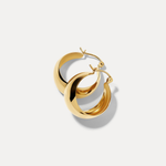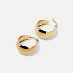 These hoops strike the perfect balance — sculptural yet sleek, substantial yet wearable. With a full-bodied dome that tapers toward the top, they bring volume and polish without feeling heavy. Cast in 14k gold and finished with a seamless high shine, they click into place with a secure latch-back closure.