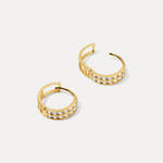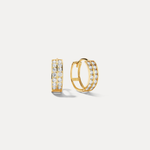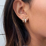 A bold twist on a classic. The Double Channel Huggies feature two parallel rows of brilliant white stones, precision-set in solid 14k gold for maximum sparkle and structure. With a snug, comfortable fit and a sleek profile, these huggies deliver standout shine without the drama — perfect for day-to-night wear, no switch-up needed.