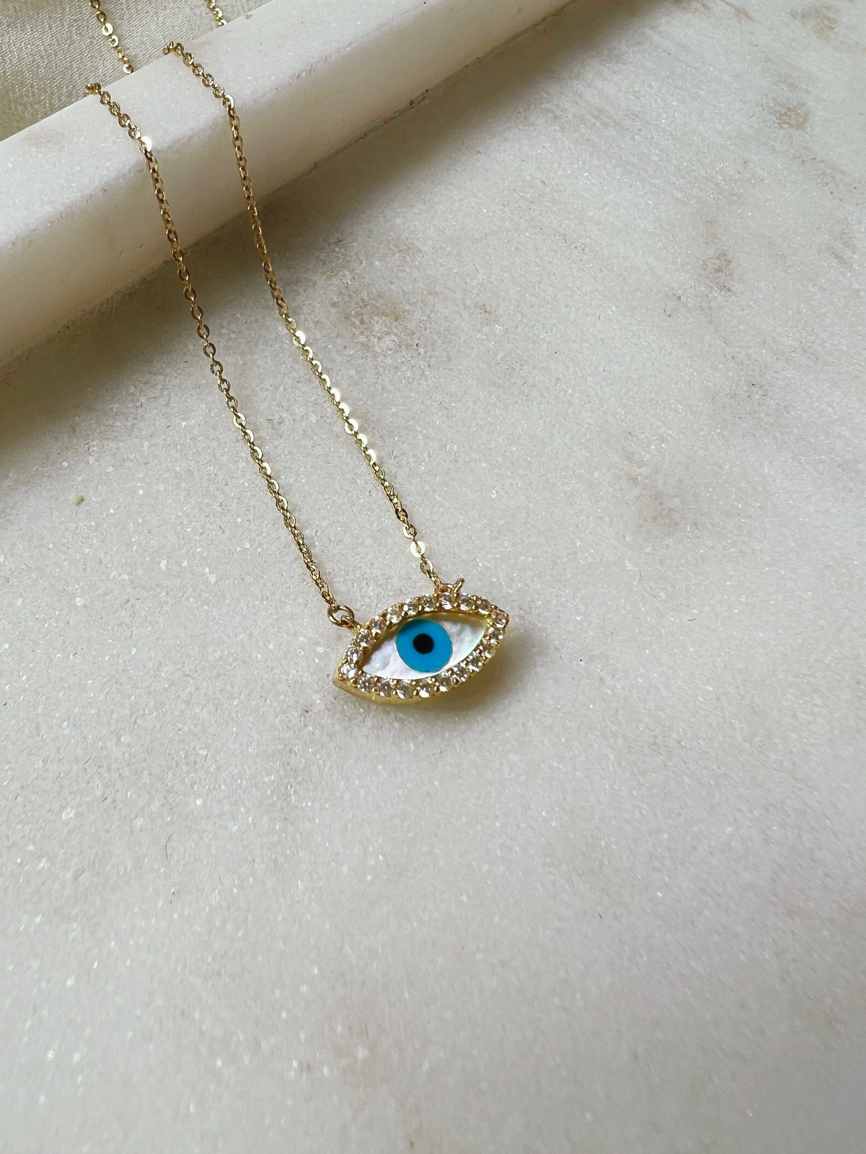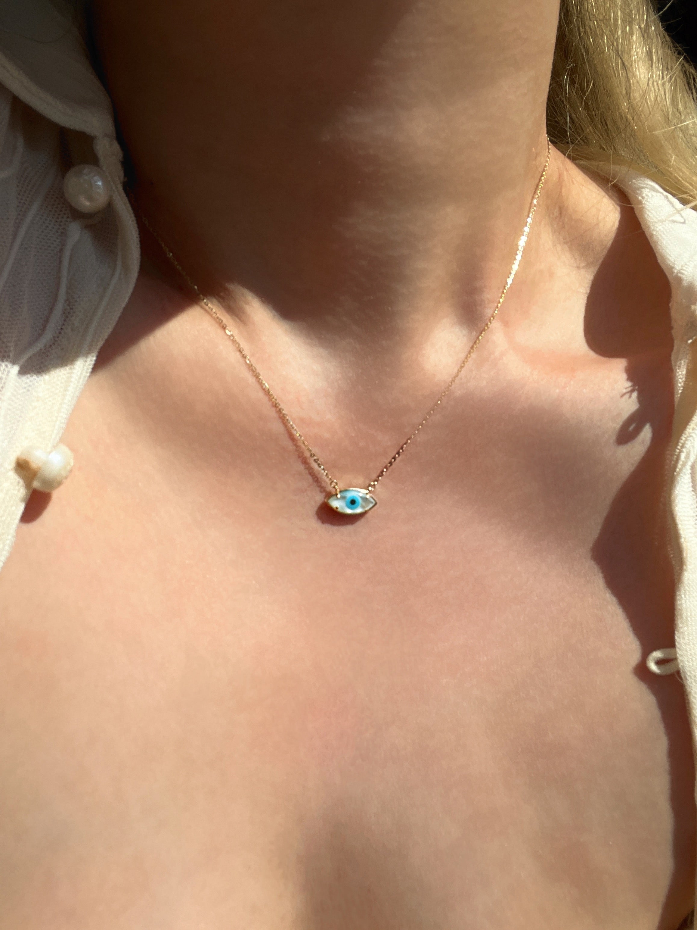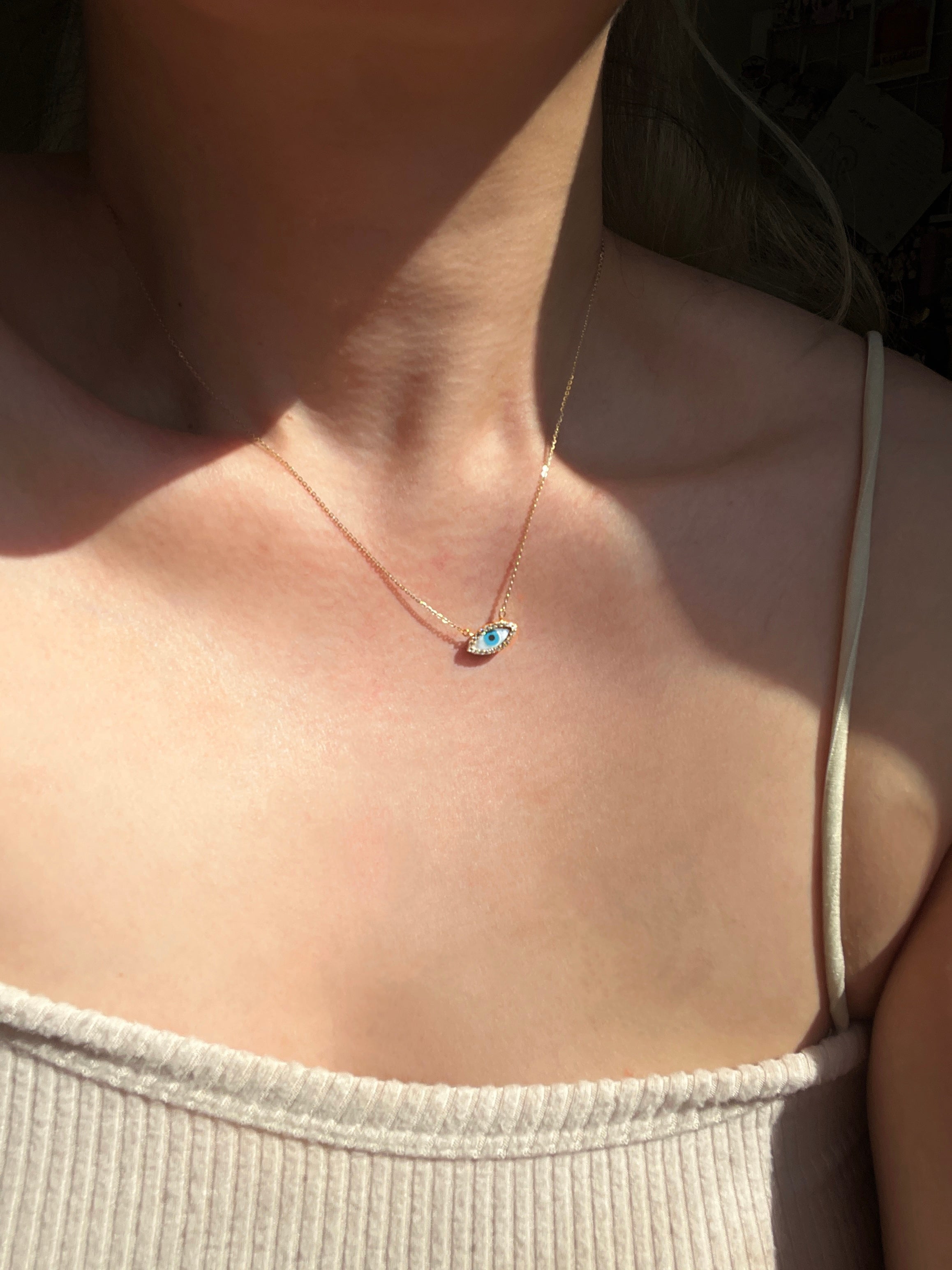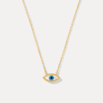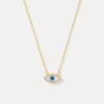 An ancient symbol of protection, the Evil Eye is believed to ward off bad luck and negativity. This version reimagines the classic with a blue enamel iris and a border of sparkling cubic zirconia, all set in solid 14k gold.