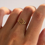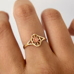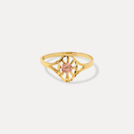 Centered with a faceted floral motif in warm 14k rose gold, the Flower Power Ring plays with shape and texture. The openwork fan setting and precision-cut accents reflect light from every angle, giving the design a dynamic, dimensional feel.