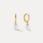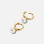 The Hanging Pearl Huggies capture contrast at its most refined — glowing freshwater pearls suspended from polished 14k gold huggies. Understated in scale, striking in presence, and effortless from day to night.