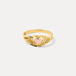 At the center of this ornate filigree band lies a solid 14k rose gold heart—proof that delicate doesn’t mean fragile. The Heartthrob Ring balances sentiment with edge through its diamond-cut textures, intricate openwork, and bold shape.