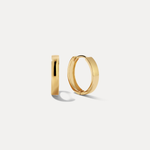 Bold shape, clean finish — the largest in our Box Huggies lineup. These 14k gold huggies feature squared edges and a sculptural rectangular cross-section that breaks from the traditional round silhouette while keeping a snug, classic fit. Designed to stand out solo or anchor your ear stack.