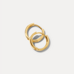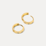 Classic reimagined with sparkle, the Luxe Huggies feature three white stones on each face that catch the light subtly. The textural contrast between brushed and polished gold adds quiet dimension. Designed with a secure hinged clasp, they offer a close, comfortable fit that transitions effortlessly from day to night.