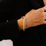 The Miami Bracelet is your statement-maker in solid 14k gold, featuring oversized Cuban-style links polished to a mirror finish. Bold yet fluid, its thick, rounded silhouette catches the light with every move, bringing warmth and shine to your everyday look.