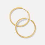 Designed with symmetry and sparkle in mind, the Mirror Channel Hoops feature pavé-set cubic zirconia stones along the front outer face, while additional stones line the inside of the back curve — both sets facing forward for uninterrupted brilliance. The result: a mirrored effect that keeps the shine going from every angle. Framed by raised channel walls and finished in high-polish 14k gold, these hoops balance sleek structure with standout shimmer.