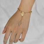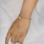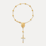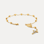 The Rosary Bracelet brings together sacred symbolism and fine craftsmanship in a piece that’s rich with meaning. Cast in solid 14k gold, this bracelet features textured bead stations, an oval Miraculous Medal centerpiece, and a dangling crucifix in contrasting gold tones.