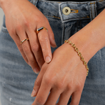 We use high-quality cubic zirconia (CZ) stones for their vibrant color, brilliance, and lasting durability. Each stone is carefully selected to complement the warmth and shine of our 14k gold, elevating every design with light-catching detail made for everyday wear.