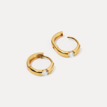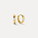 A single clear stone set into bold, high-polish gold. The Solitaire Huggies are your new everyday signature—minimal, luminous, and unmistakably luxe. Crafted in 14k gold with a high-polish finish and a seamless hinge closure for a clean, secure fit. Designed to wear solo or stacked.