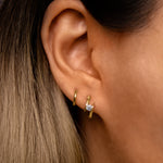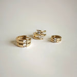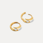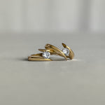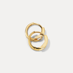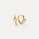 Meet the most sculptural style in our Solitaire Huggies lineup. These 14k gold huggies hold a single clear gemstone in a unique split-wrap setting that creates an open, swirled silhouette—giving the illusion of movement and edge from every angle.