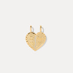 The Te Amo BFF Pendant begins as one: a single 14k gold heart engraved with Te Amo and delicate rose accents. Designed to be split down the center, the pendant breaks cleanly into two halves — made to share with someone close.