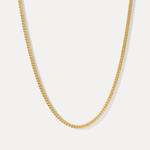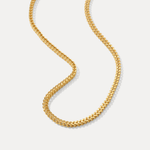 A bold classic with a distinct edge, the Franco Chain is defined by its tight, V-shaped links forming a subtle “S” pattern throughout. The result is a structured-flex, soft-shine silhouette that catches light from every angle. Cast in 14k gold with a hollow, open-shell design, it balances strength and comfort for effortless, everyday wear.