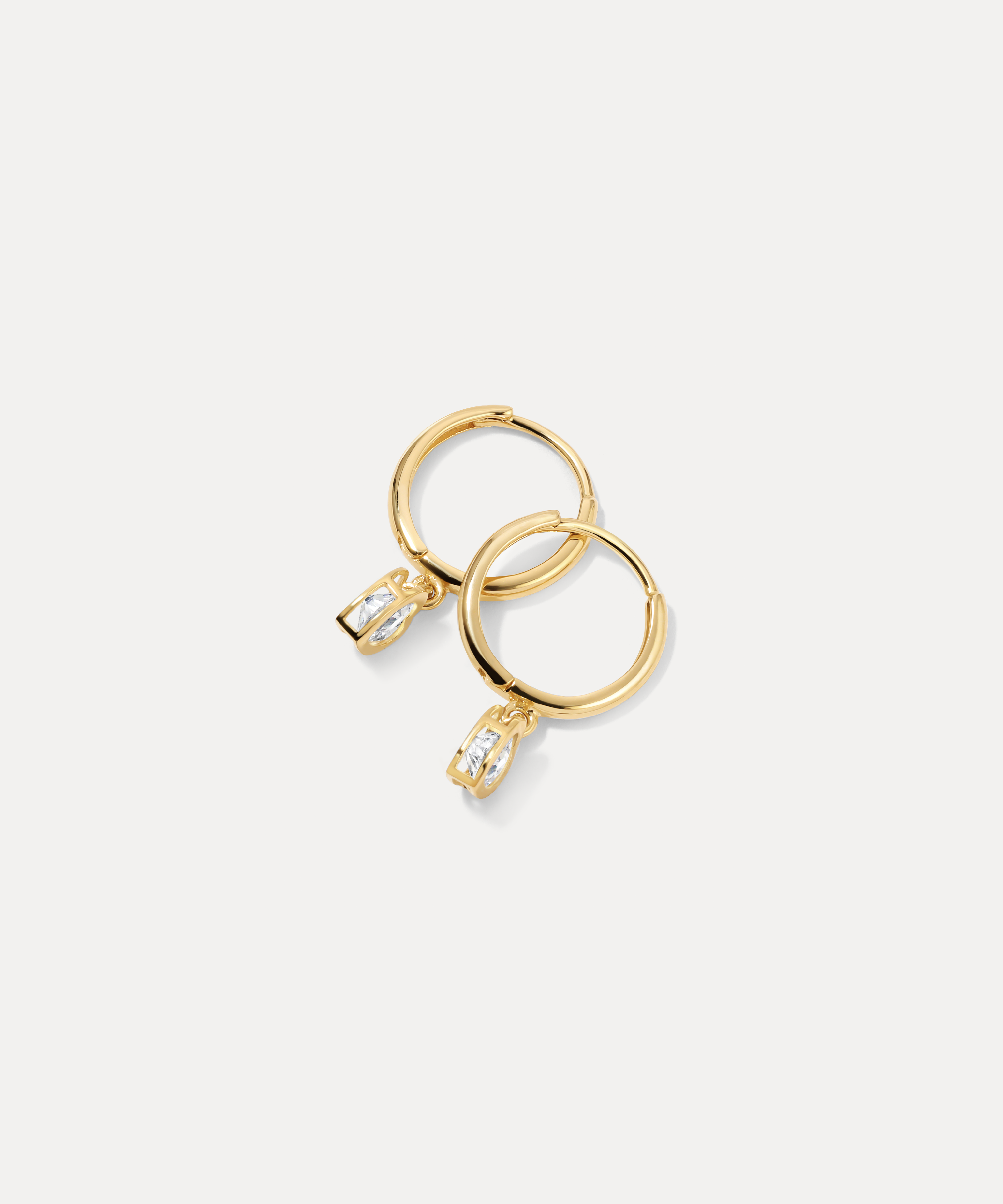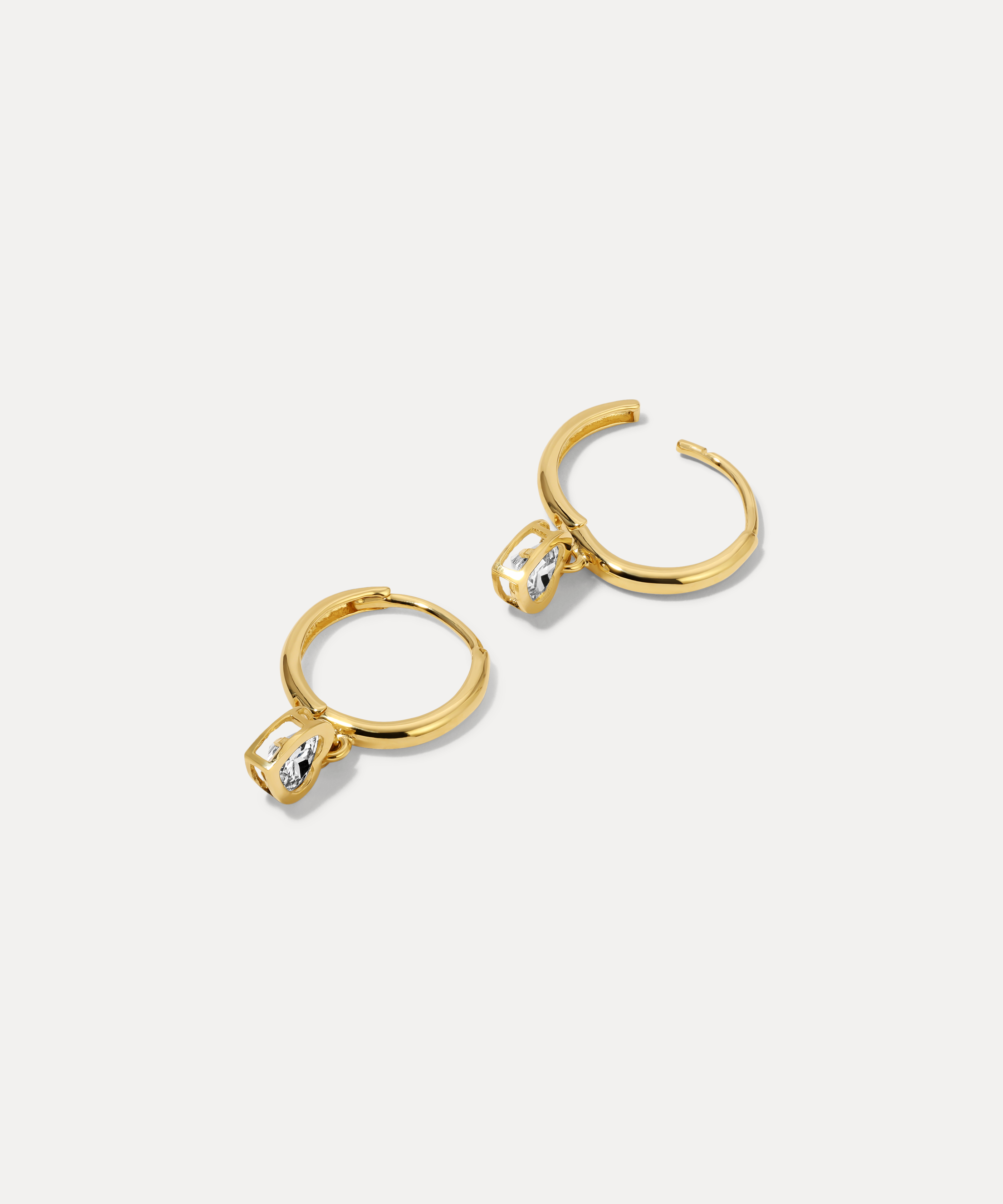 Small in size, big on sentiment. The Amore Hanging Huggies feature a polished 14k gold hoop with a bezel-set heart-shaped stone that catches the light with every move. Delicate, flirty, and endlessly wearable, these are the kind of earrings you’ll reach for on repeat — whether it’s date night or just because.