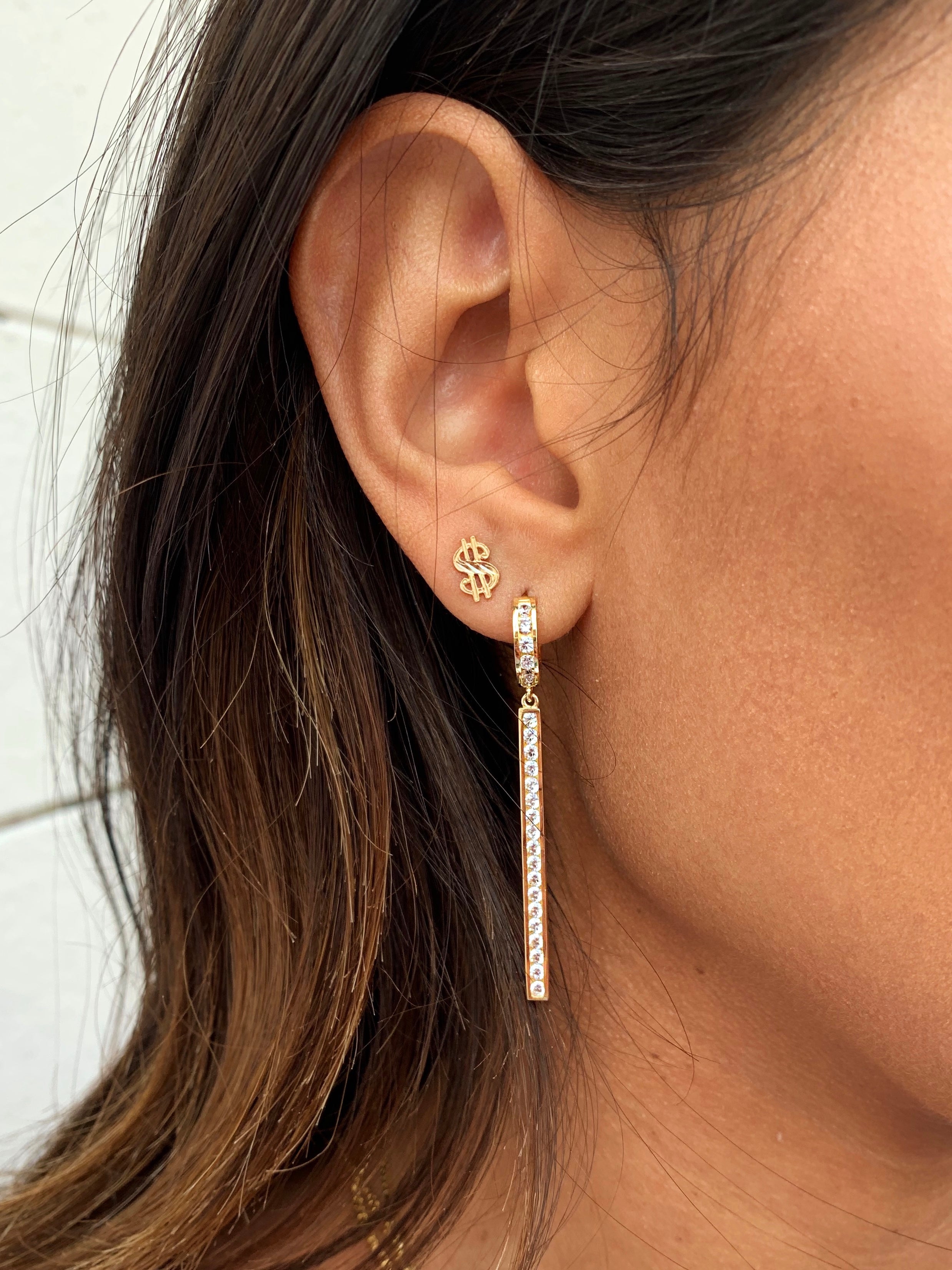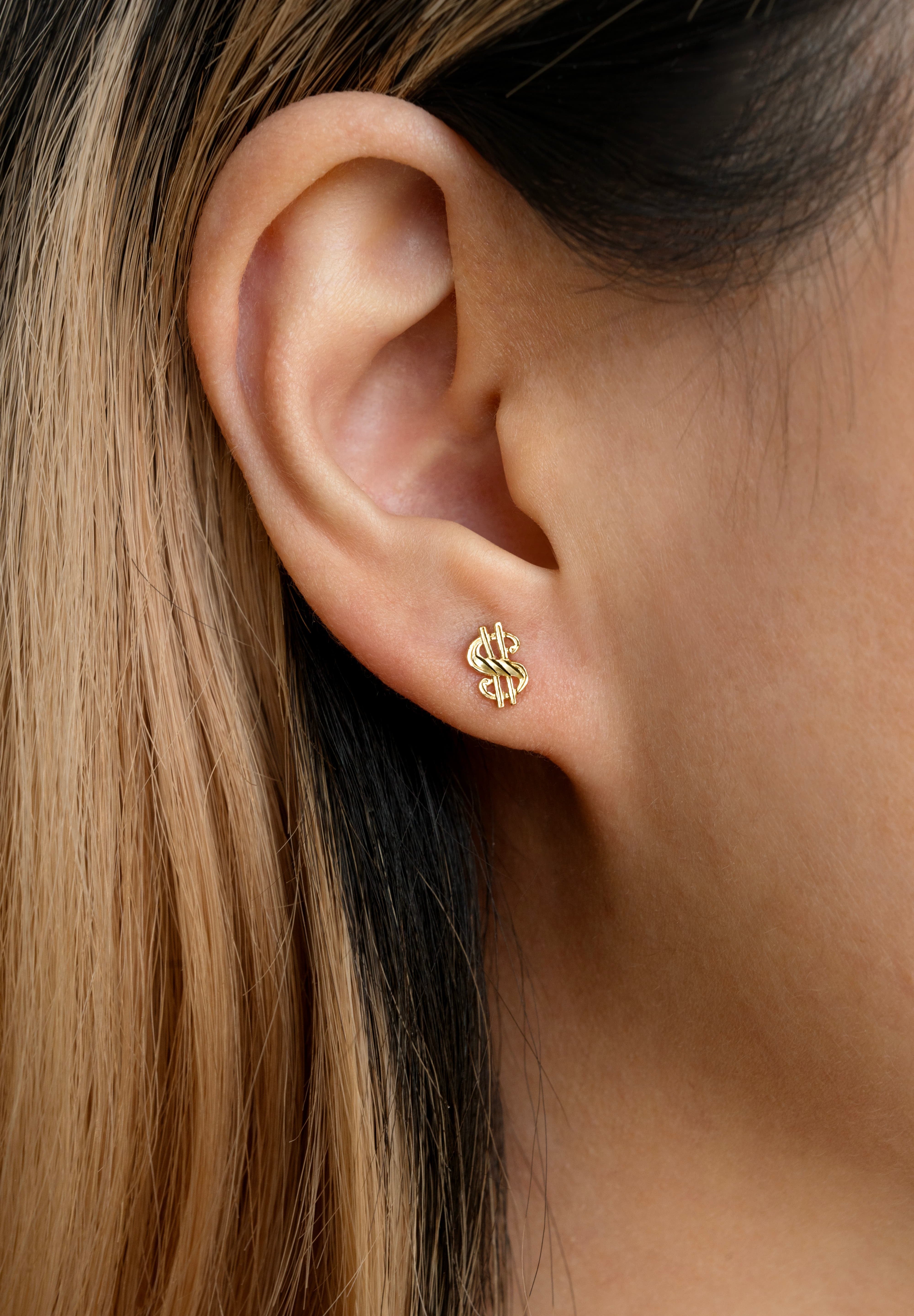 The Franklin Studs feature the dollar sign cast in solid 14k gold, finished with diamond-cut detailing that catches the light like a gem. Whether you’re stacking Benjamins or manifesting more, these studs are all about confidence, power, and unapologetic shine. Wear them solo or as part of a bold stack — either way, make money talk.