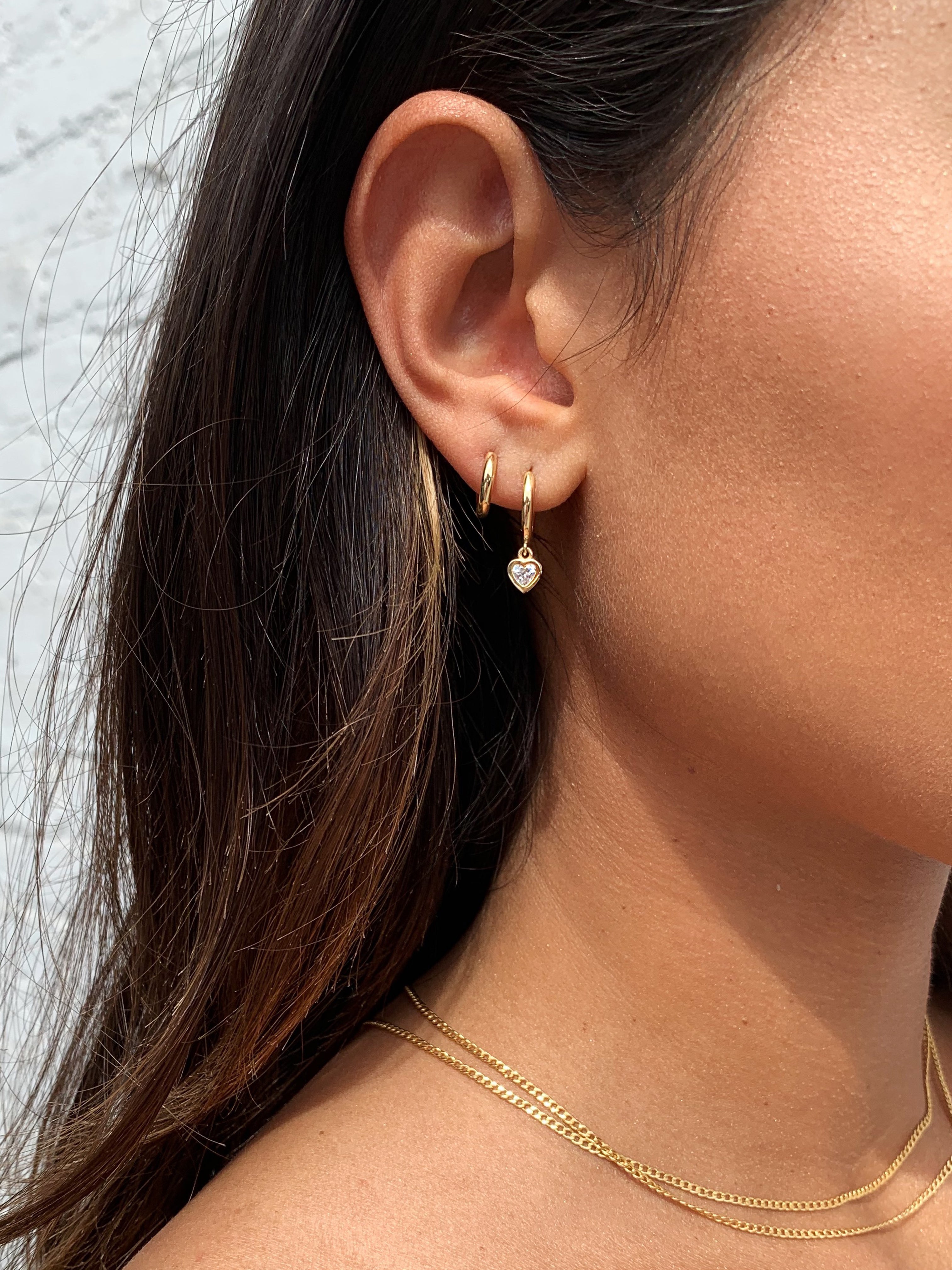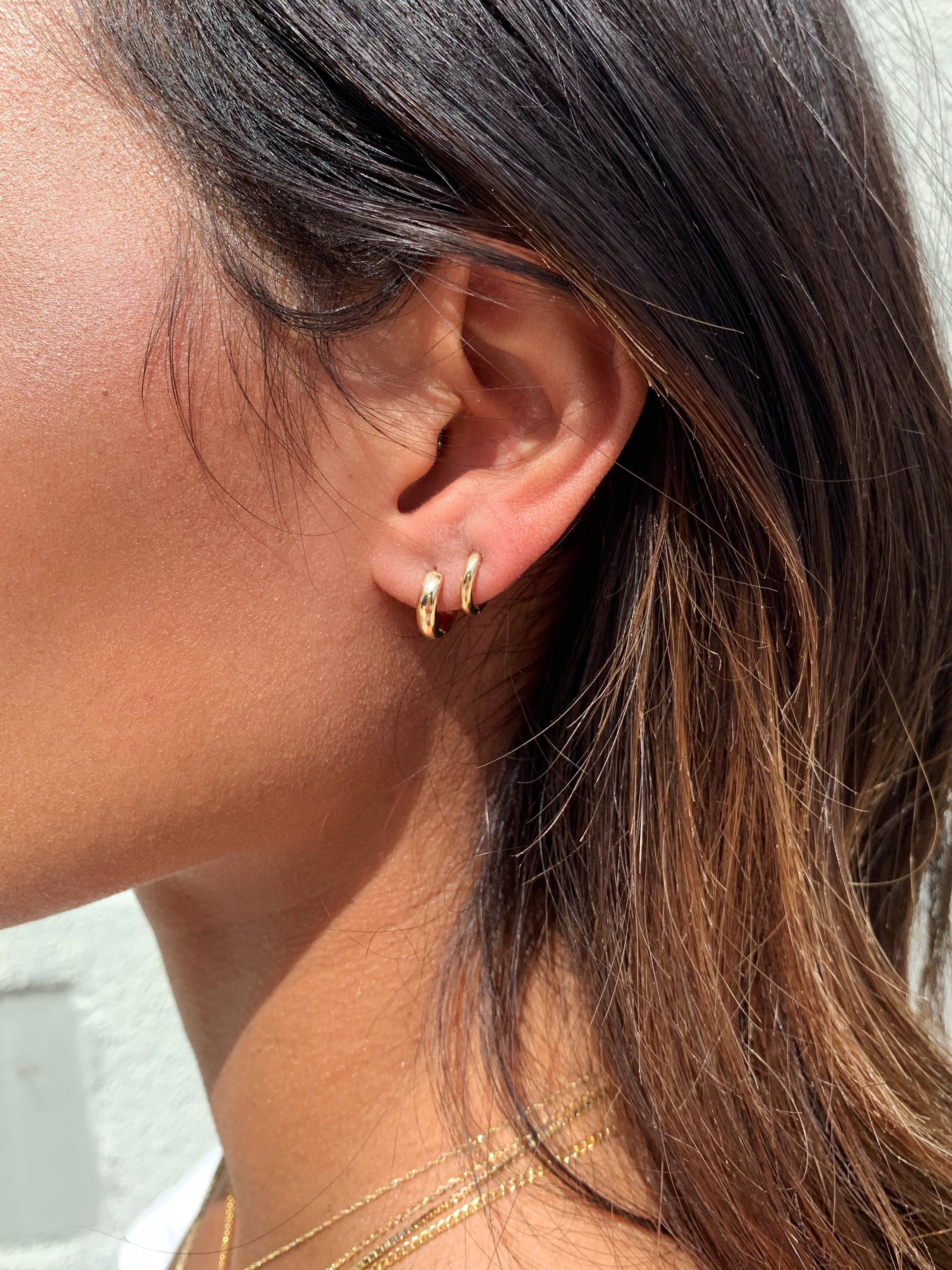 A subtle staple with just a touch more shine. The Mini Huggies are slightly larger than our Baby size — crafted in solid 14k gold for everyday wear. Ideal for second piercings or minimal lobe looks, they’re stackable, lightweight, and finished with our secure hinged closure for all-day comfort.