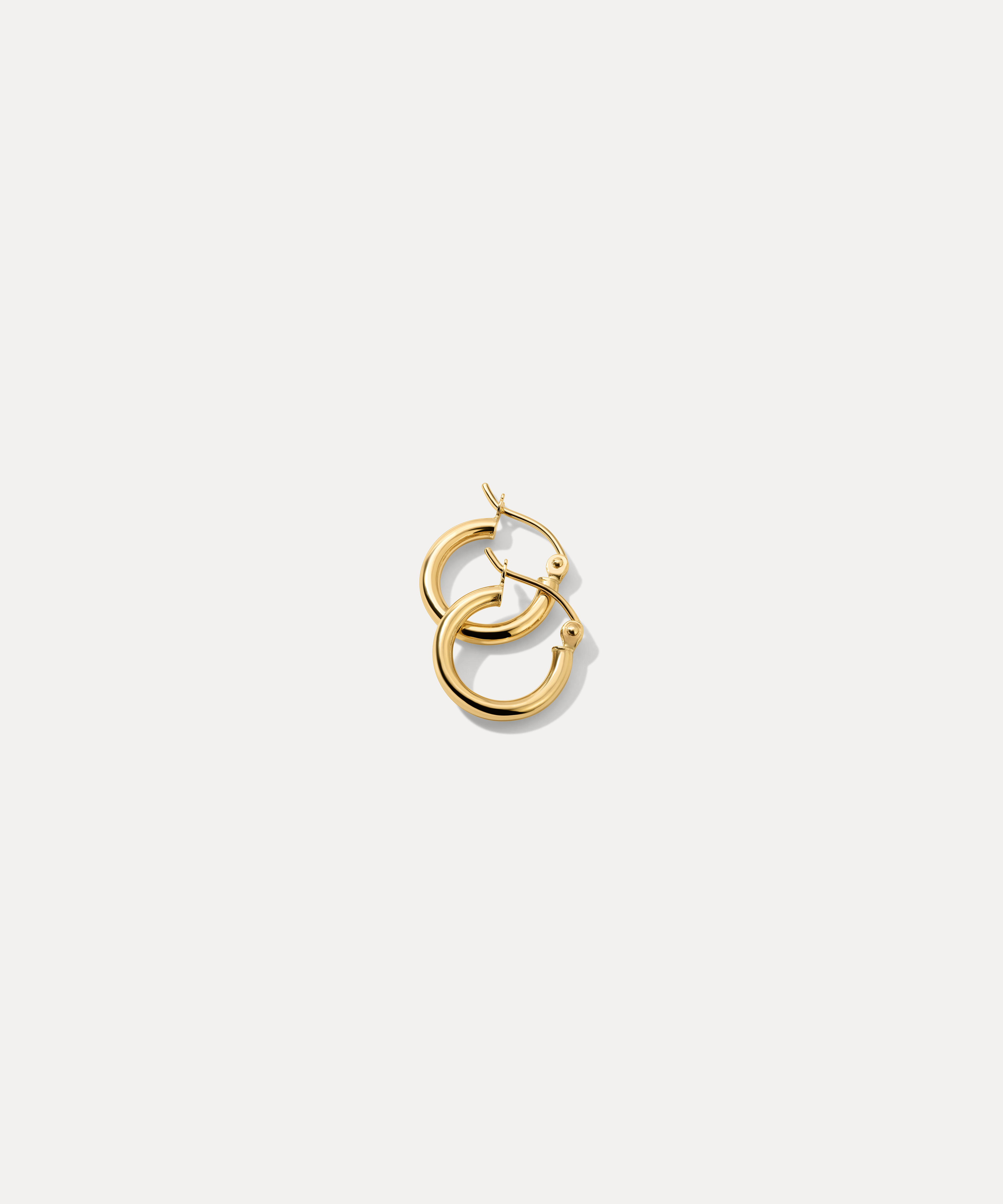 Our most petite gold hoops — delicate, minimal, and made for everyday. Crafted in solid 14k gold, the Mini Hoops are perfect for second or third piercings, or as a subtle standalone piece. Lightweight, polished, and finished with a secure latch back closure.