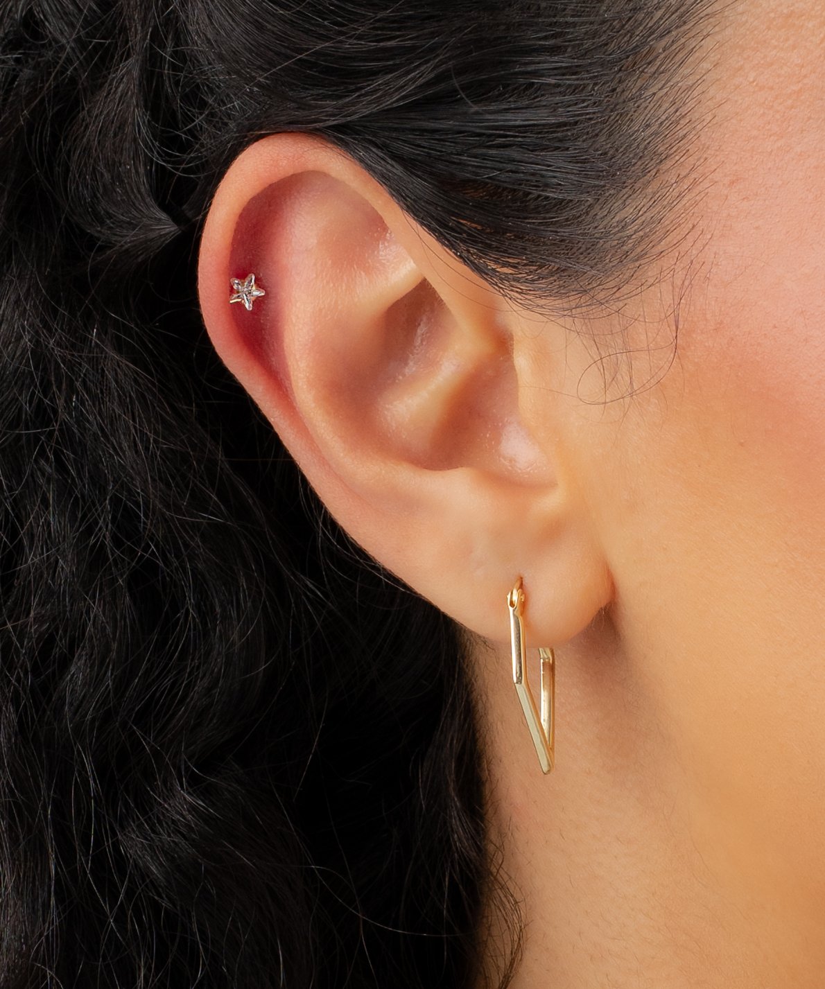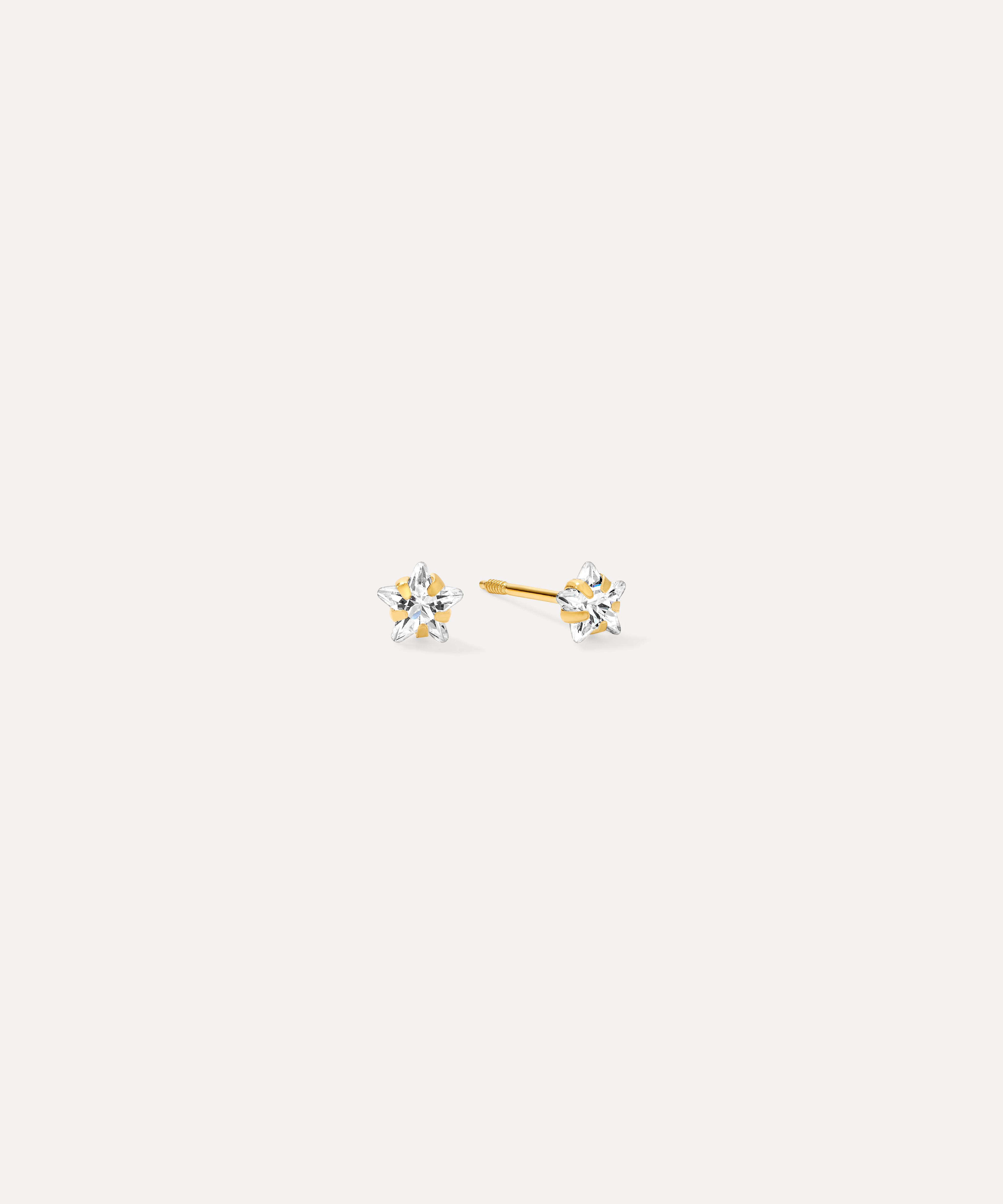 A little more shine, still just as subtle. The Mini Solitaire Star Stud is crafted in solid 14k gold and set with a star-shaped stone — slightly larger than our Baby version, but still perfectly petite. Wear it solo or let it orbit your favorites to build a constellation that’s all your own.