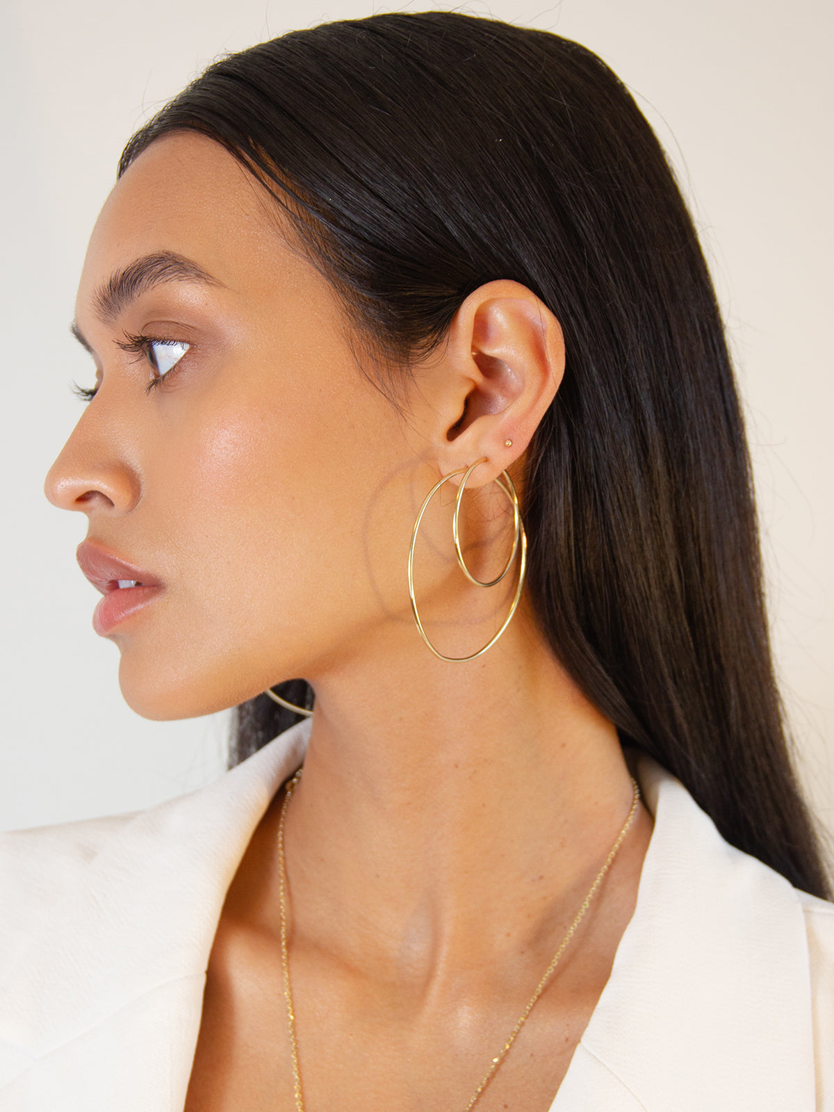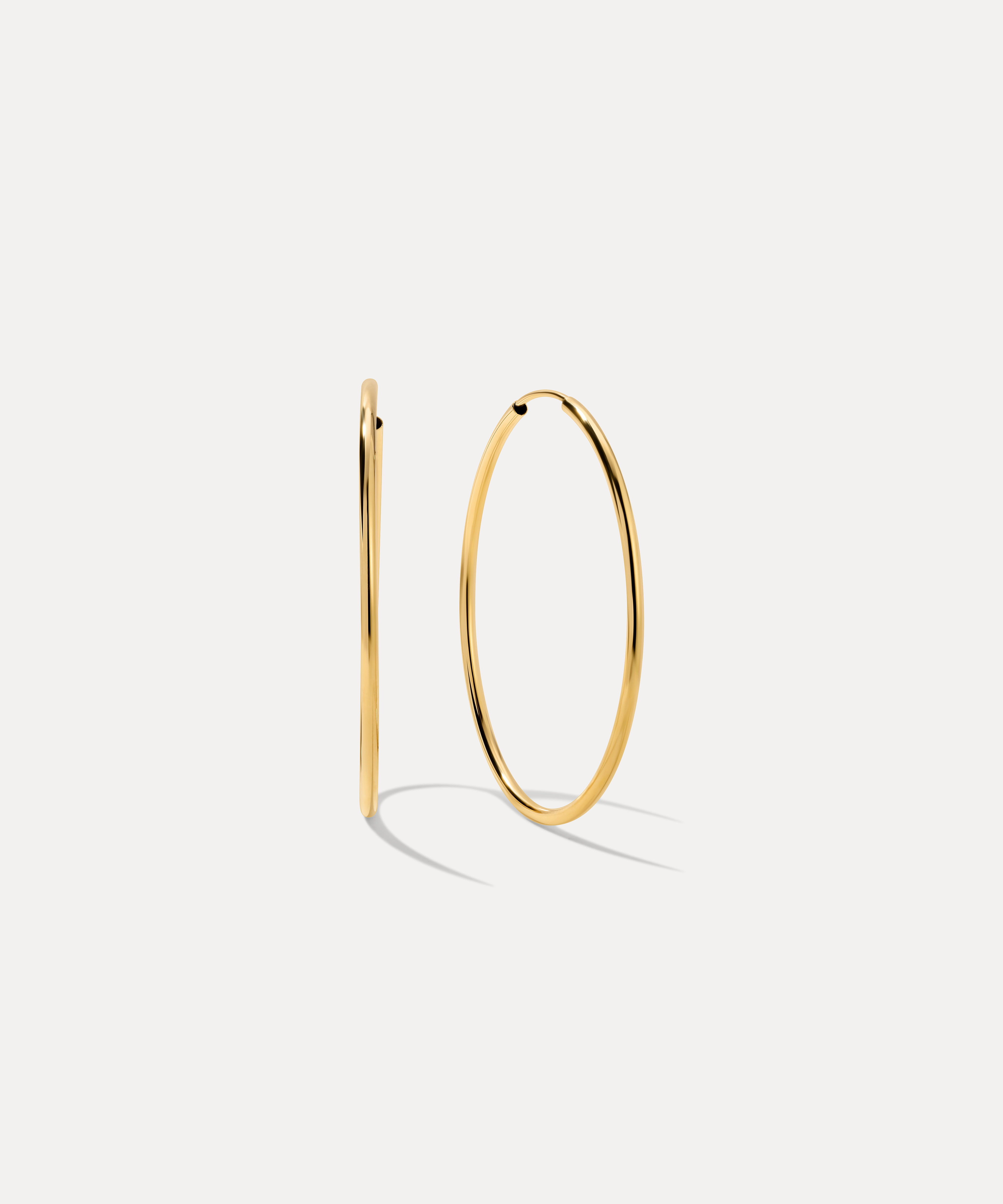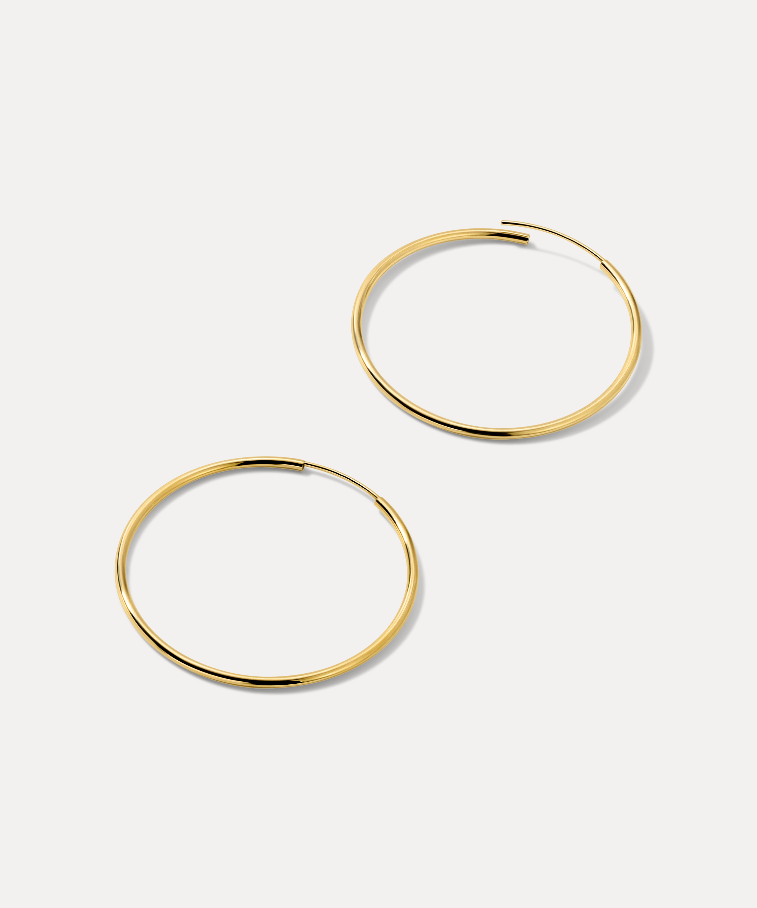 Sleek, simple, and made for everyday ease. The Small Lightweight Hoops are crafted in solid 14k gold with a slim, polished silhouette and an ultra-light feel. An endless-style closure allows the post to tuck seamlessly into the hoop, creating a smooth, streamlined look with no visible clasp. Comfortable enough to forget you’re wearing them — but hard to miss.