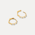 Crafted in solid 14k gold and set with a clean row of baguette-cut stones, these huggies deliver structured shine with a minimalist edge. Refined, modern, and endlessly stackable — they’re the kind of piece you’ll keep in rotation for years.