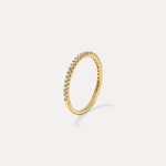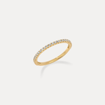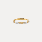 The Demi Pavé Band is designed for just the right amount of sparkle. Set with a line of round-cut stones across the top half, it offers brilliance without overwhelming. Crafted in 14k solid gold with a slim profile, this ring is made for easy stacking or subtle solo shine — a minimal essential with maximum versatility.