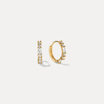 Two timeless cuts, one effortless design. These 14k gold huggies feature alternating round and baguette stones that create contrast, sparkle, and dimension from every angle. Understated enough for everyday, striking enough to stand alone.