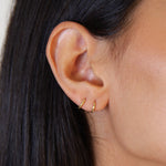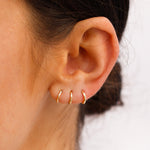 A scaled-down take on our iconic Basic Huggies. The smallest in our Basic Huggies Trio, the Baby Huggies are tiny, solid gold essentials. Perfect for lobes, cartilage, or tragus piercings, they bring sublte shine to any ear stack. Finished with our secure hinged closure that stays comfortably in place, day and night.