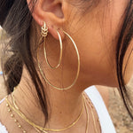 These aren’t your average huggies. The Triple Chain Huggies feature a sleek row of pavé-set stones along the front, paired with three interlocking gold rings that swing freely with every step. Crafted in solid 14k gold, they combine structure, sparkle, and movement — for a look that’s bold, fluid, and full of attitude.