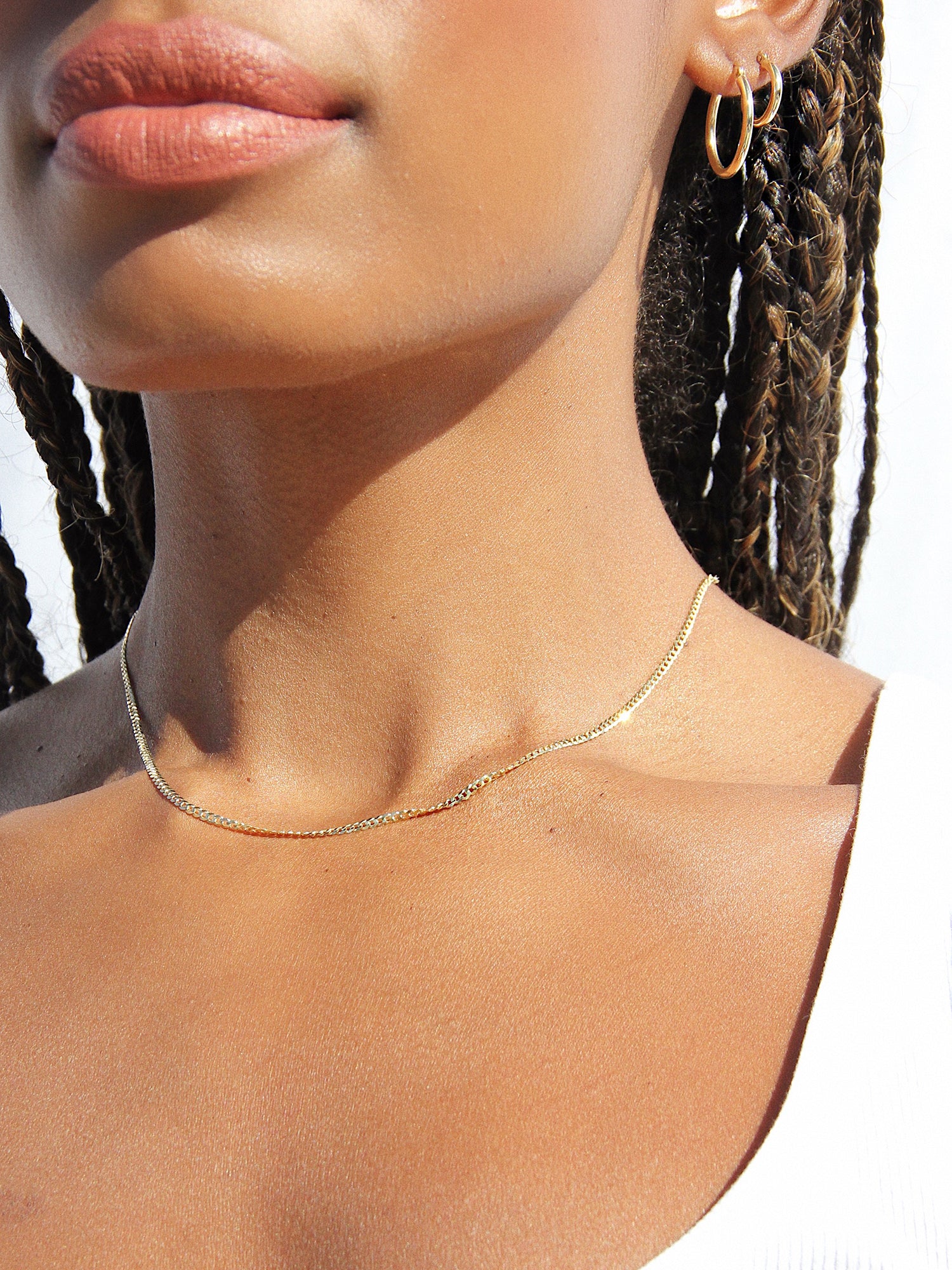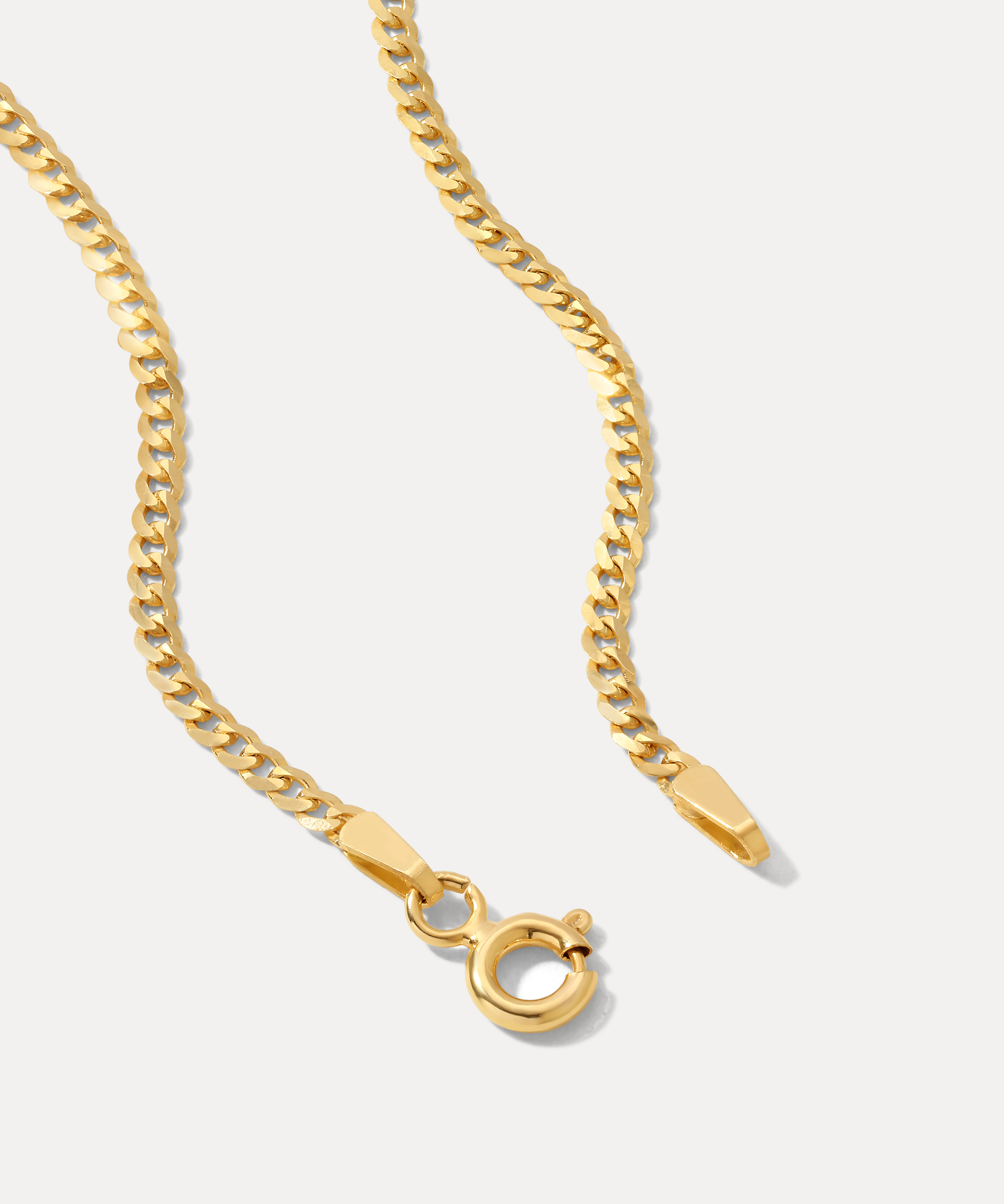 Delicately crafted from solid 14k gold with flat Cuban links, tightly interlocked for a clean, minimal silhouette. Lightweight, comfortable, and quietly luxurious, it’s perfect on its own or layered into your everyday stack.