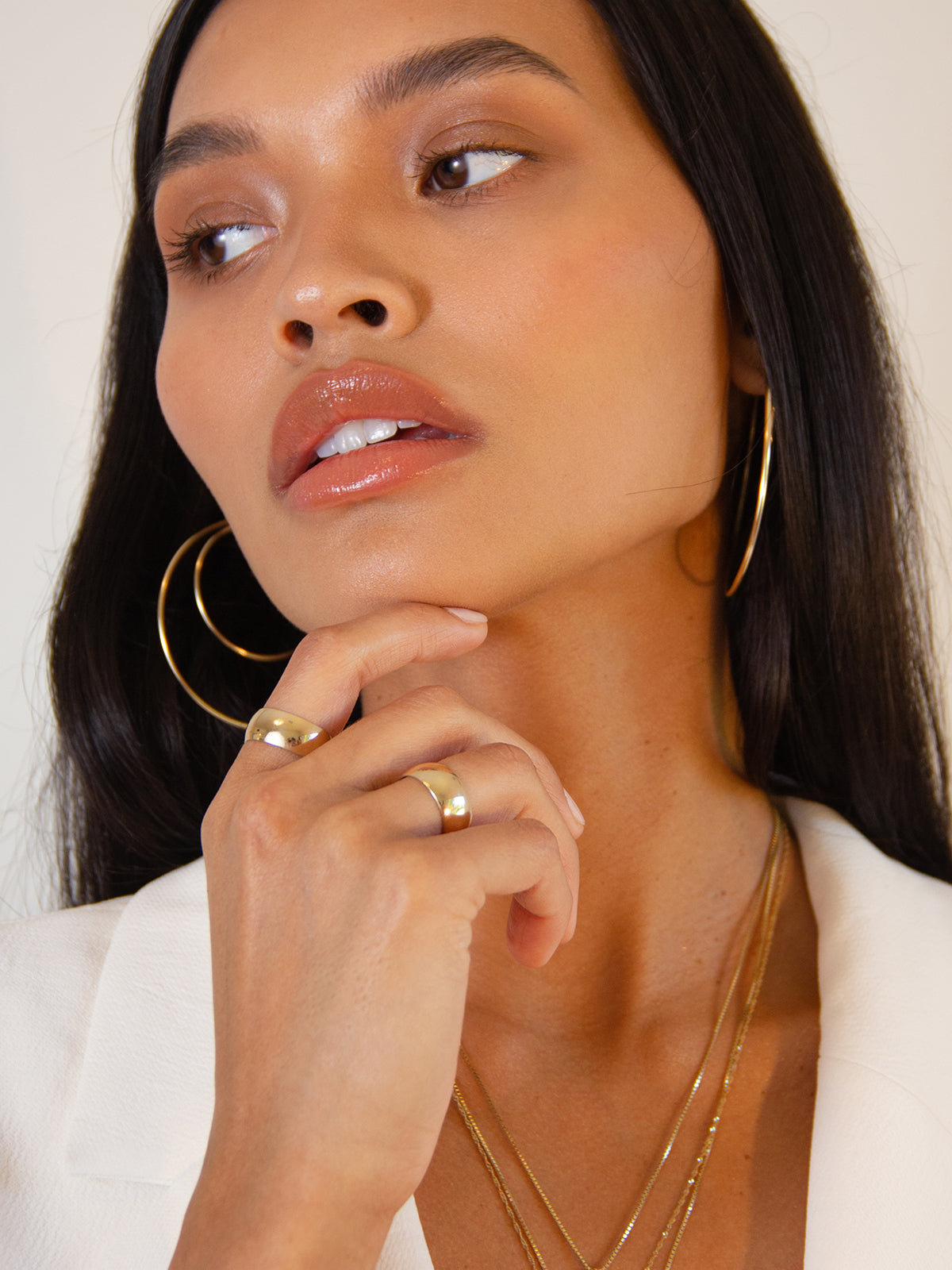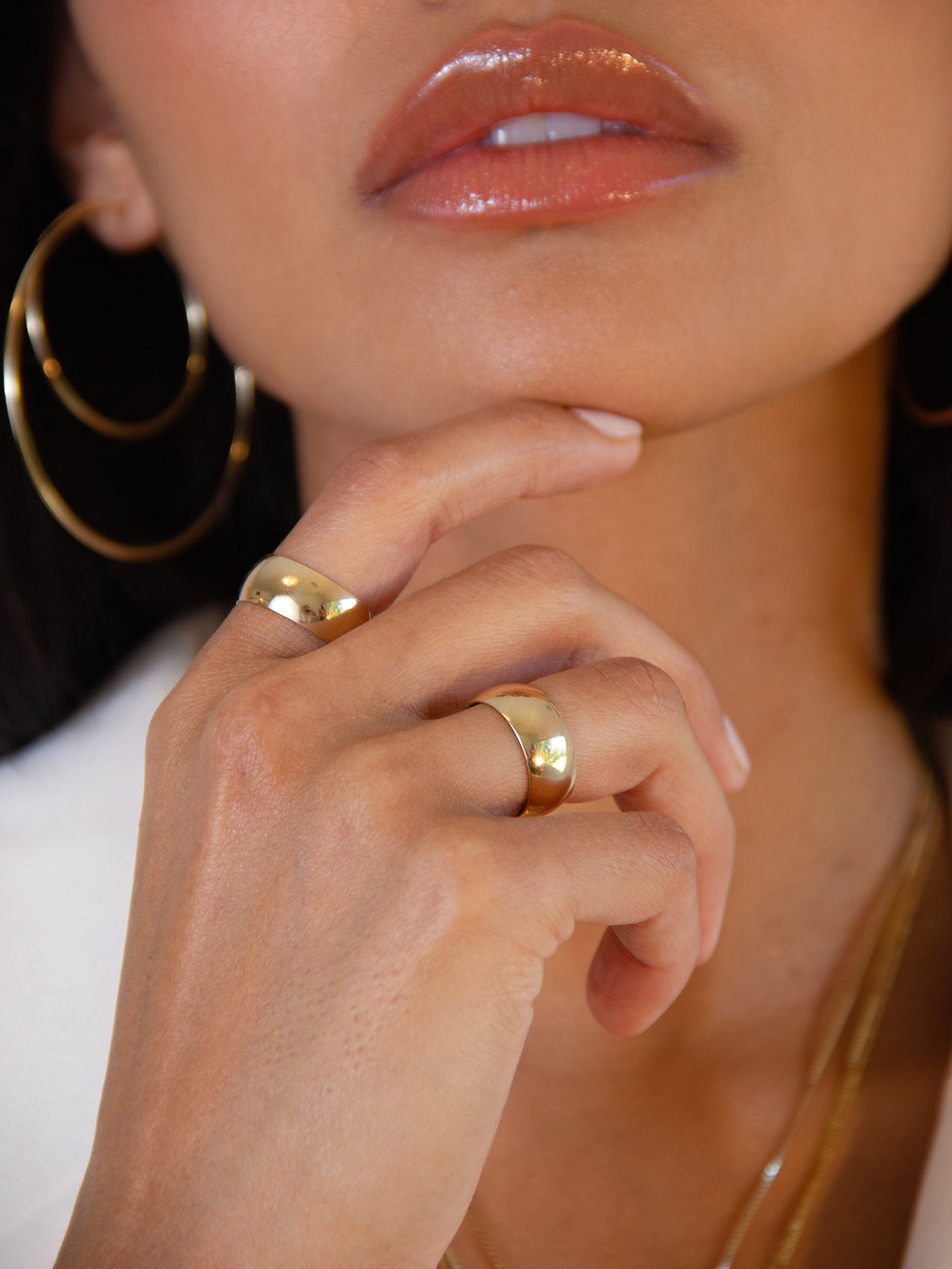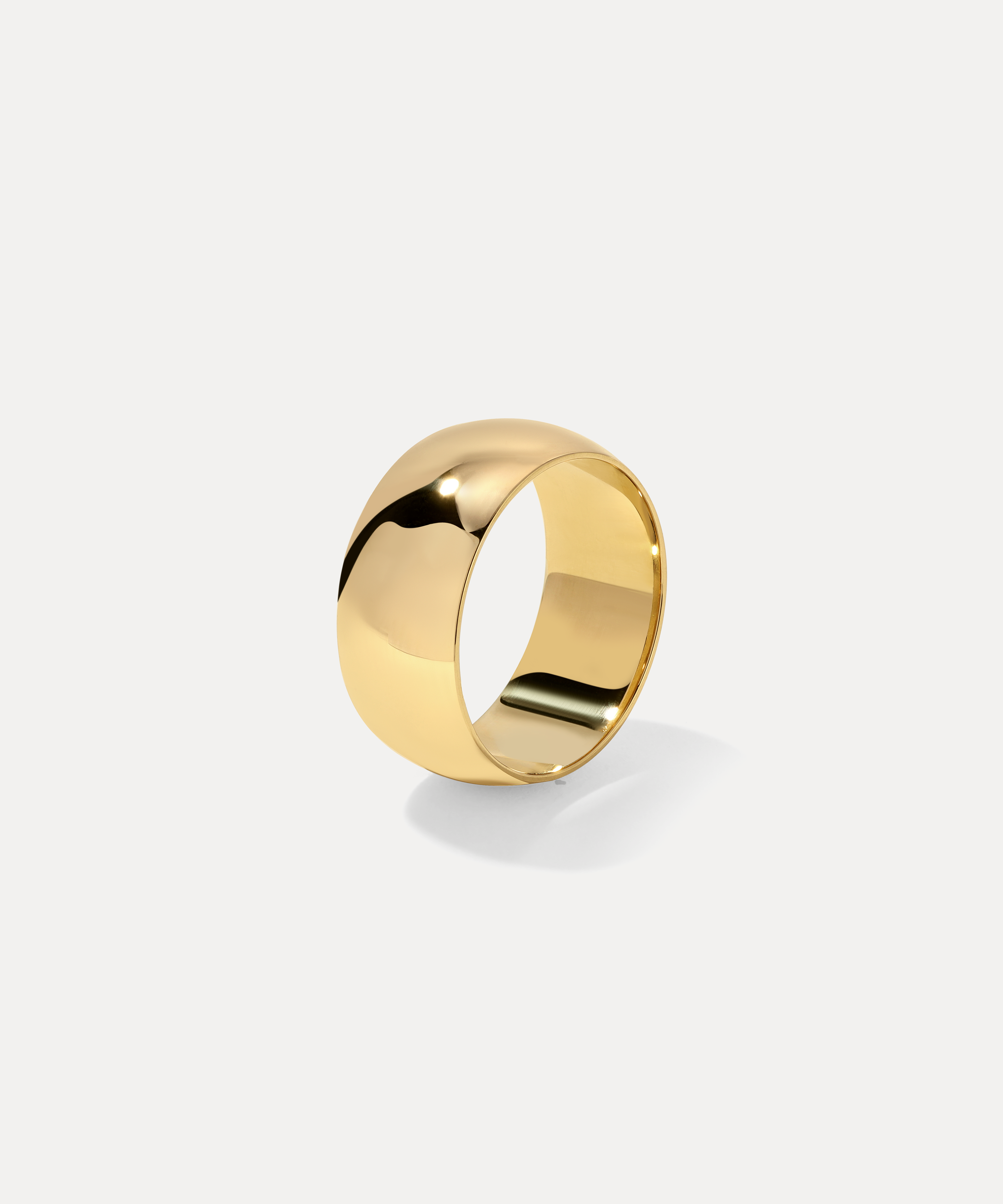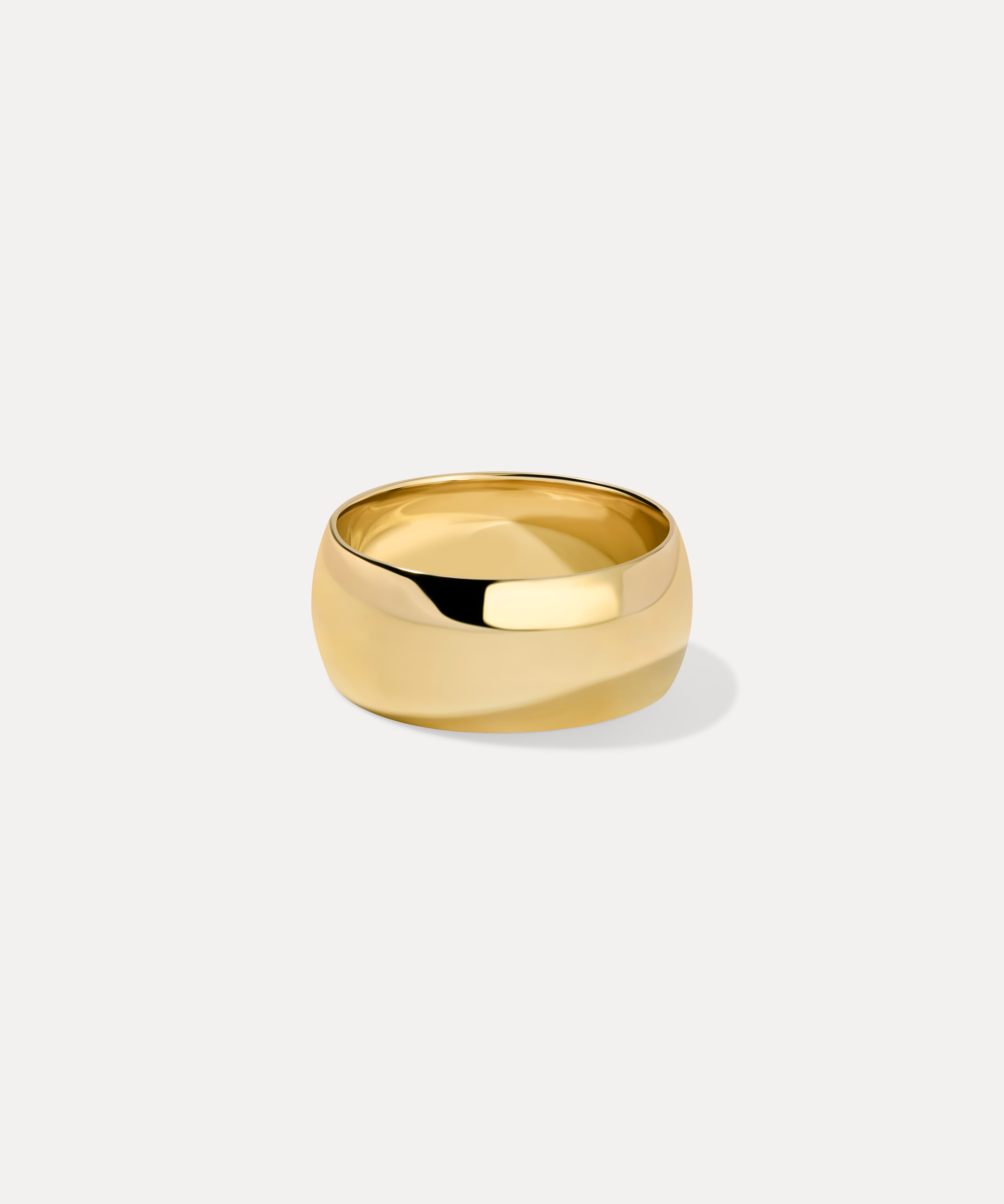 The Wide Signature Band doesn’t whisper — it shines. With a mirror-like finish and sculptural dome, this solid 14k gold ring commands attention with undeniable presence. A comfort-fit interior ensures it wears effortlessly — bold, balanced, and built to last.