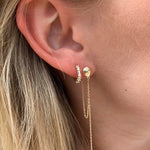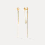 A delicate drop of gold with just enough movement to catch the light. The Forget Me Dot Earrings feature a polished dome stud paired with fine, double-chain detailing that adds subtle movement from front to back. Crafted in solid 14k gold, they offer a barely-there feel with an unmistakably elevated presence. Understated, fluid, and endlessly versatile — these are the earrings you’ll forget you’re wearing (but no one else will).