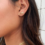 The Love Me Studs spell out “love” and “me” in a cursive typeface — designed to be styled your way. Wear one on each ear or stack both on the same ear for full effect. Cast in solid 14k gold and polished to a mirror shine, they’re a playful, feel-good gift (especially if you're gifting yourself).