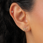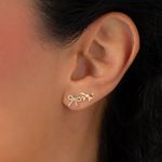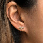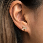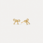 Tied tight. Lit bright. A sleek take on the bow. The Pavé Ribbon Studs are cast in solid 14k gold with a stylized ribbon form, set edge to edge with white CZ stones. Clean and bold, finished with threaded posts for secure, everyday wear.