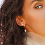 Freshwater pearls are suspended from the lobe on fine 14k gold chain, creating a floating effect that moves with you and catches the light. Simple in silhouette, softly captivating—refined but playful. These drops add gentle motion and warmth to any look.