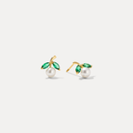These playful studs reimagine the cherry with a fine jewelry twist: two marquise-cut green CZ leaves top a luminous freshwater pearl “cherry.”