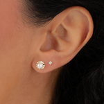 A tiny star with a lasting shine. The Baby Solitaire Star Stud is crafted in solid 14k gold and set with a single star-shaped stone. Petite and versatile, it’s perfect for second or third piercings — or paired with larger studs for a subtle layered look. Subtle, meaningful, and made to stay.