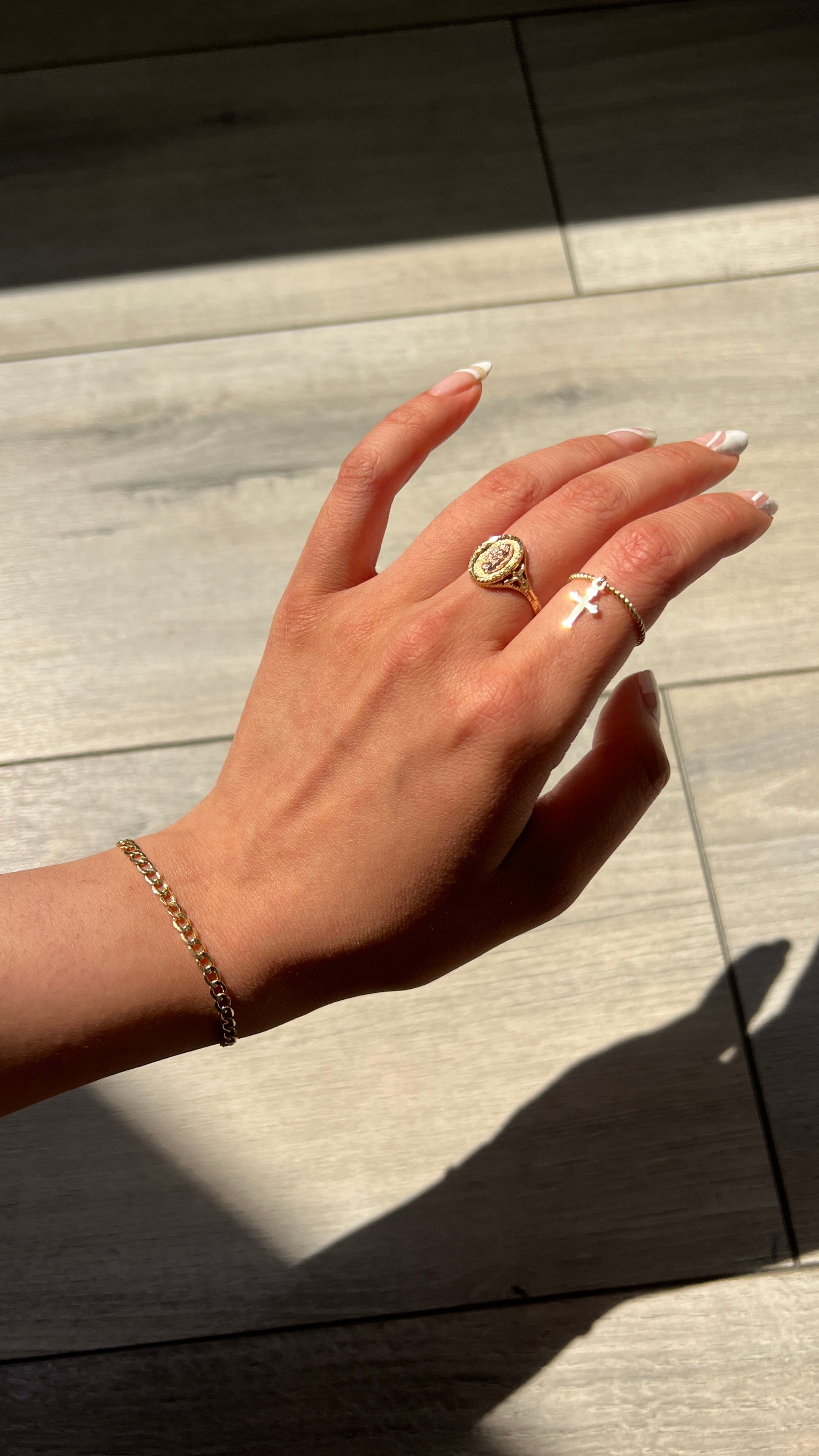 The rope-textured shank adds dimension, while the high-polish charm catches light as it dances with your every move. A subtle, sacred symbol — made to be worn boldly.