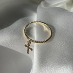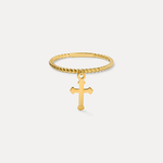 Designed to keep up with your rhythm, this playful ring features a free-moving cross charm suspended from a twisted 14k gold band.