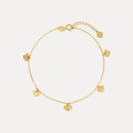 Love on repeat. This delicate bracelet is crafted in solid 14k yellow gold and adorned with five diamond-cut heart charms — each one catching the light with its textured, high-polish finish. Designed to sparkle with every gesture, it's complete with a secure spring ring clasp and an adjustable chain for a just-right fit.