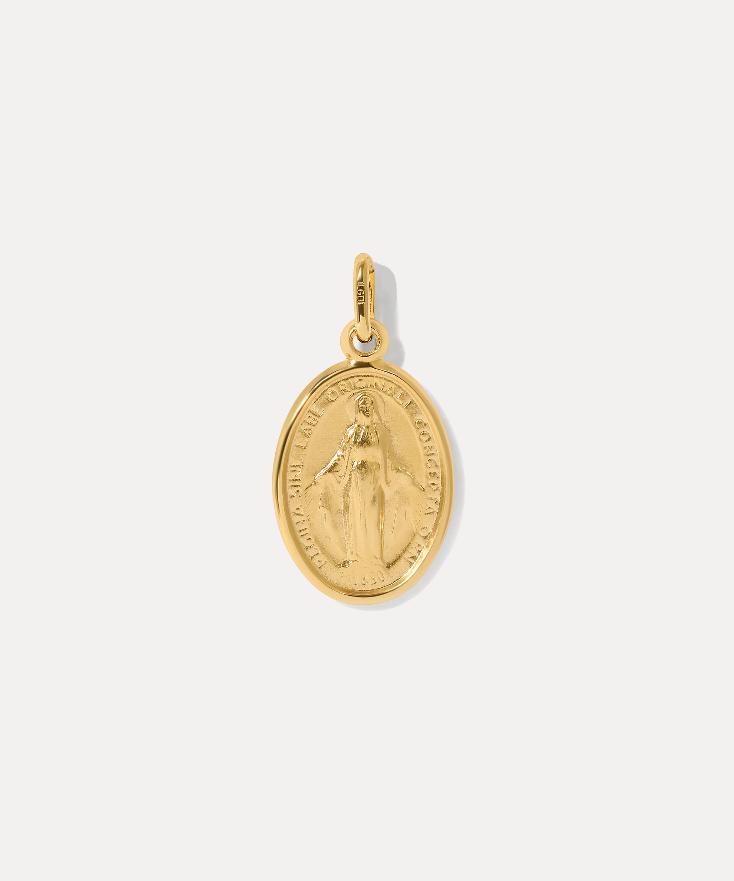 Based on the historic Miraculous Medal first created in 1830 France, this medallion captures the Virgin Mary in her most iconic pose — arms outstretched in blessing, as seen by St. Catherine Labouré in her vision.