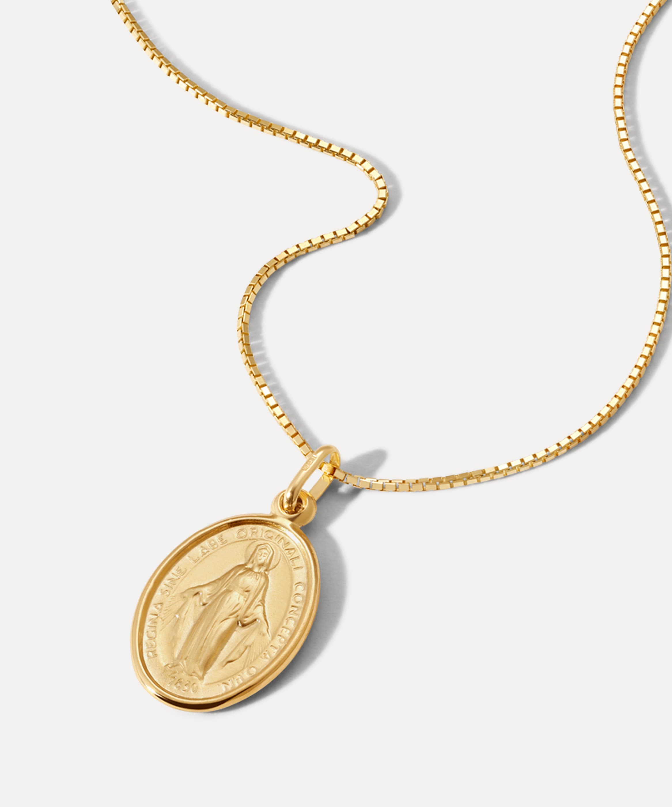 Stamped in solid 14k gold with a polished edge, this timeless medallion can be worn with your favorite chain. Looking for the ready-to-wear version? Shop the Hey Mary Necklace.