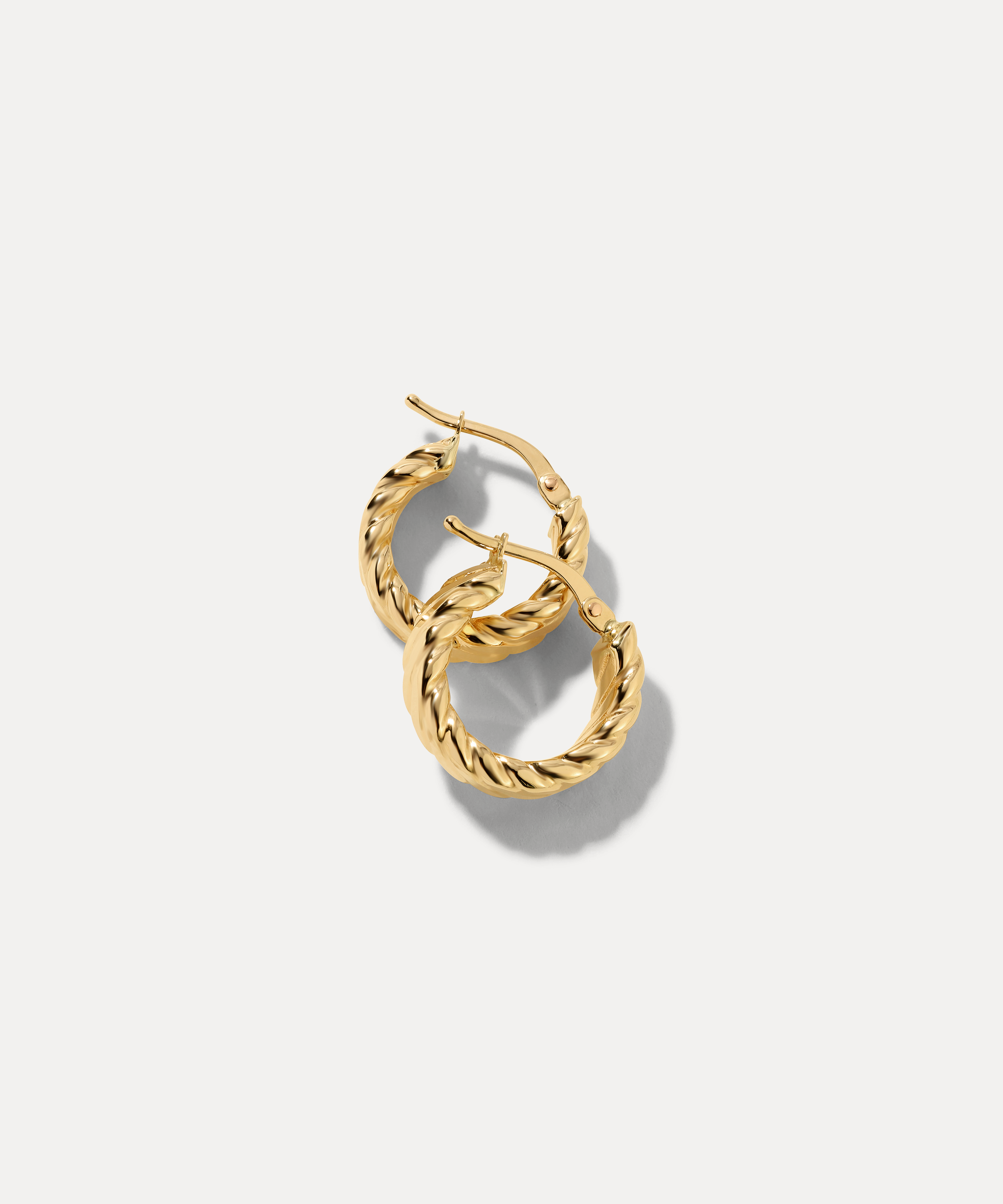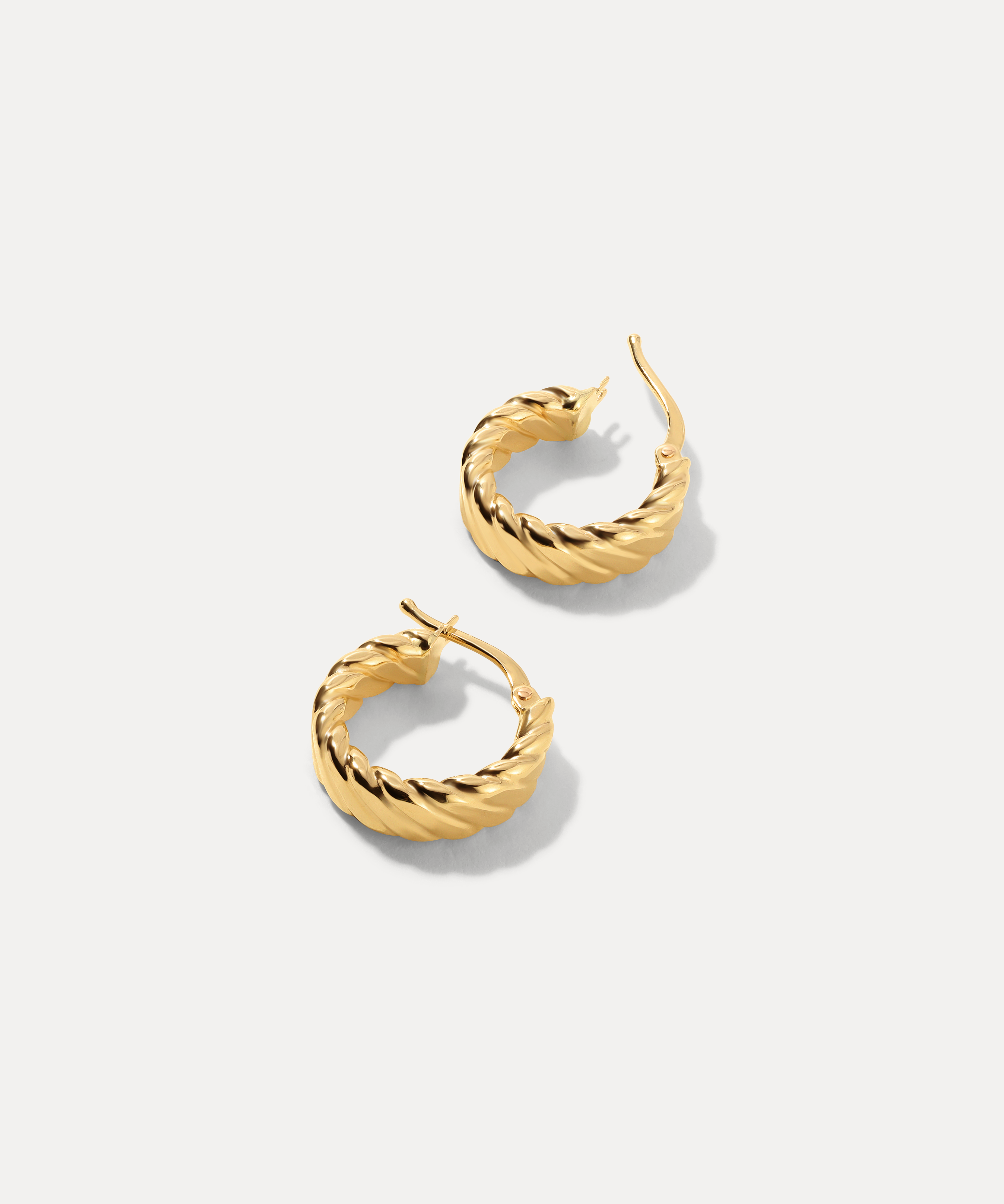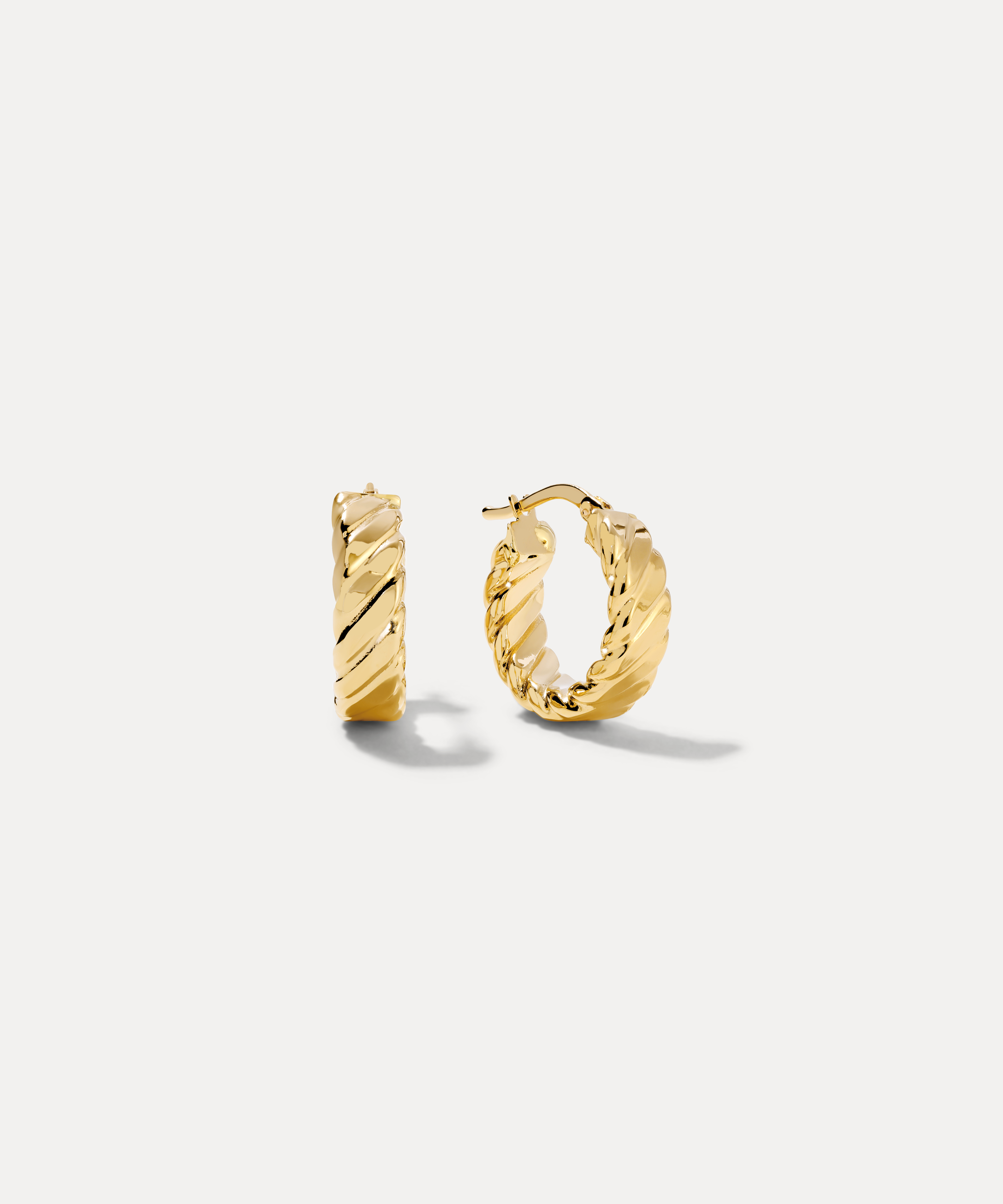 The same sculptural swirl, downsized. The Small Señorita Hoops bring texture and shine to your everyday lineup with their spiral design and high-polish 14k gold finish. Lightweight, stackable, and easy to wear from day to night.