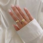 The Filigree Signet Ring features a softly domed face framed by ornate gold scrollwork. Cast in solid 14k gold, this piece draws on vintage filigree patterns while keeping the center surface clean and minimal — a graceful nod to heritage design, reimagined for today.