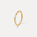 This ring captures the poetry of connection — how life’s twists and turns often bring us closer. Crafted in solid 14k gold, the band gently splits into two: one side left sleek and polished, the other set with a trail of white cubic zirconia that glimmers with every movement.